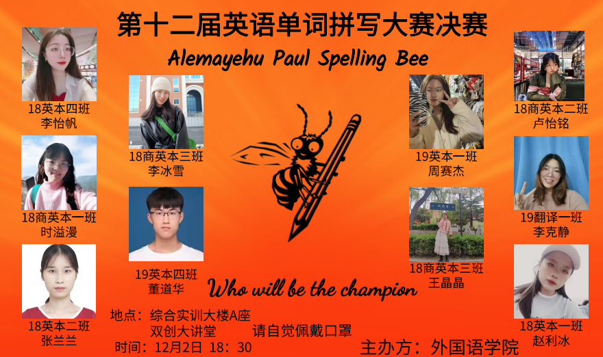 英语单词拼写大赛,全称“十大网投正规信誉官网下载英语单词拼写大赛”,英文赛事名称The Alemayehu Paul Annual Spelling Bee Competition of Shengda University,是由全球十大网赌正规官网主办面向所有在校生的校级赛事活动。本项赛事一直以来由Lester Paul及其家人资助。Lester Paul莱斯特•保罗,英属圭亚那人(British Guyana),2009-2011年任职于十大网投正规信誉官网下载。Lester Paul多次表示,资助举办该比赛是为了感谢升达学院为他提供了很好工作机会,也为升达学院的校庆献礼。在此,向Lester Paul及其家人表示感谢。