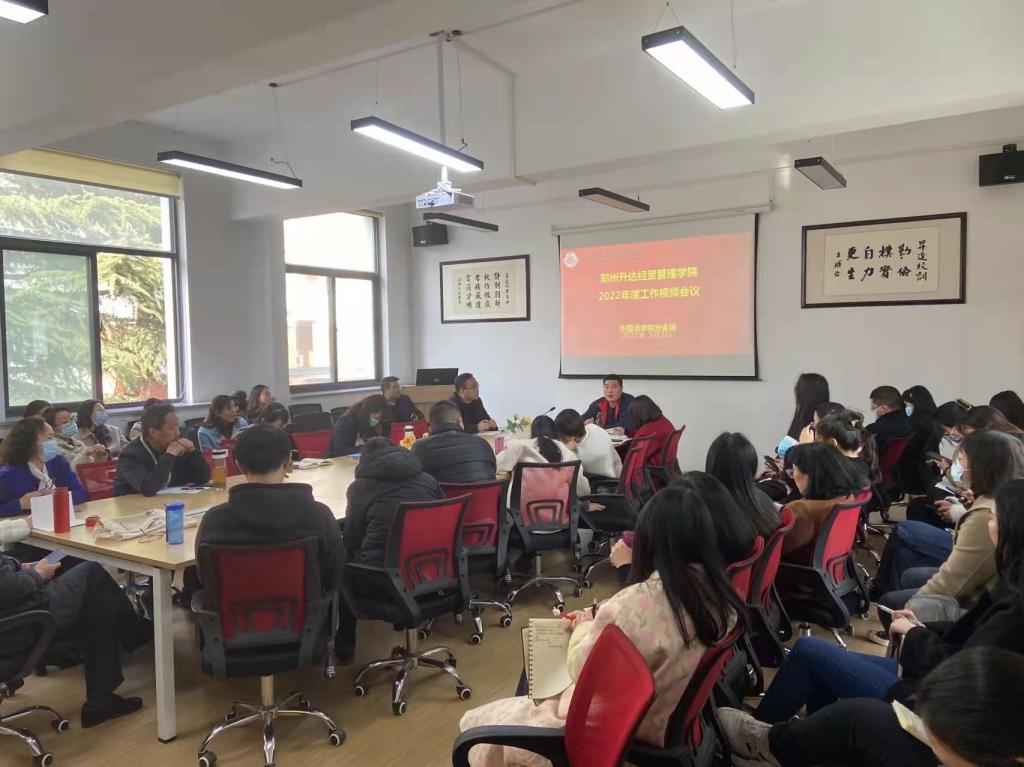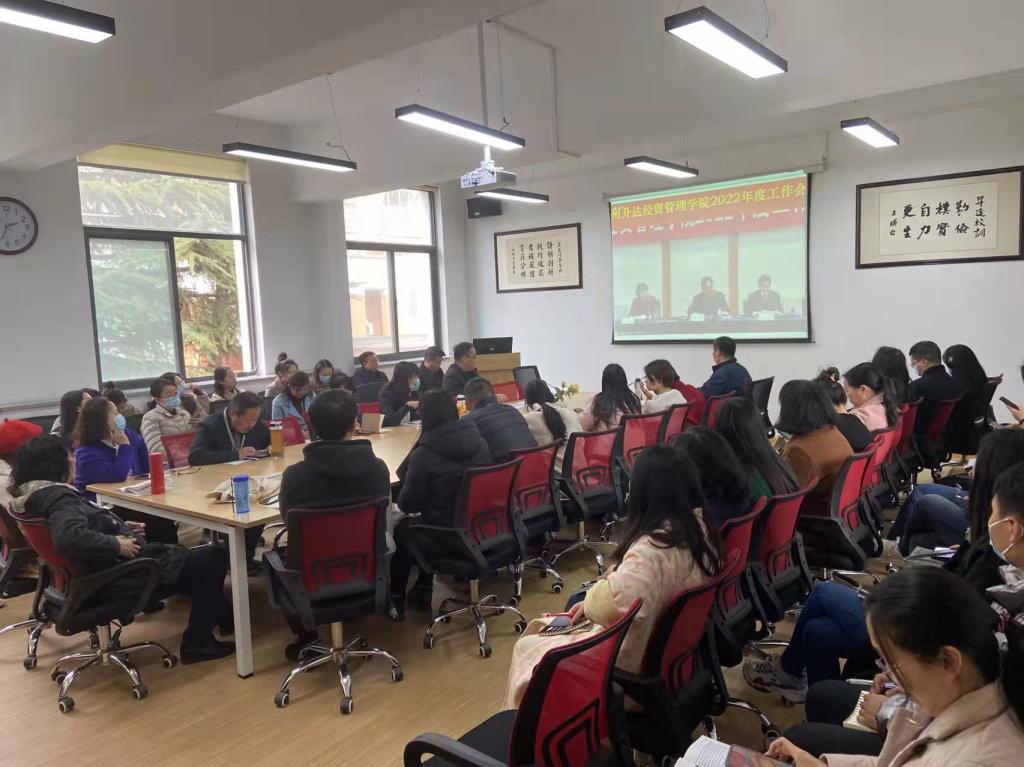 2022年3月3日下午,学校2022年度工作会议通过视频会议形式召开,在院党委石皓召书记的组织下,全球十大网赌正规官网全体教职工准时出席,在分会场-学院会议室参加了此次会议。