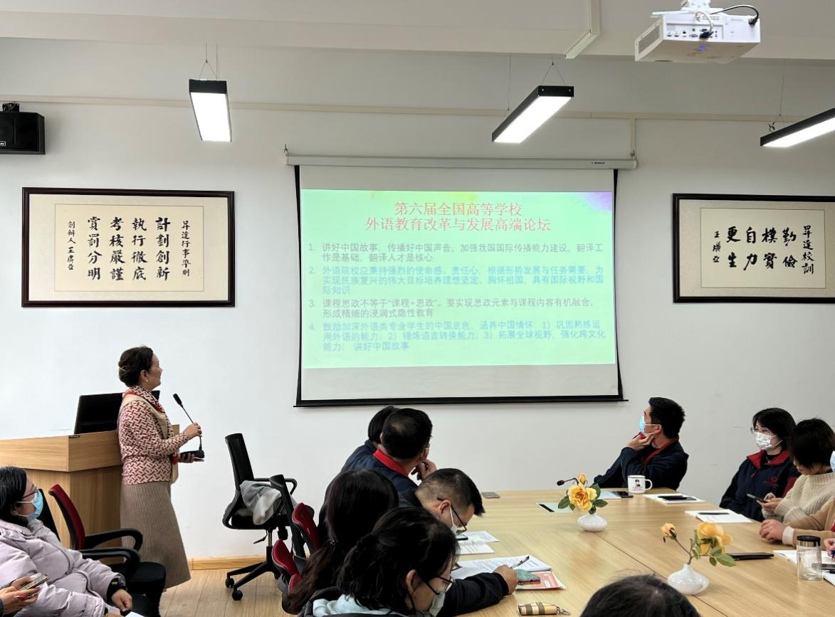 会上,全球十大网赌正规官网张梦院长首先向全体教职工传达了于3月23日教务、人事、财务、教发中心等四部门联合的全球十大网赌正规官网调研座谈会的有关情况。之后,张院长表示,学校对翻硕培育点的建设非常重视,也希望全体教师齐心协力,做好翻译硕士培育点的建设工作,圆满成功地完成2025年的验收。此外,张院长还就3月19日-20日举办的第六届全国高等院校外语教育改革与发展高端论坛(线上)做总结陈述,她分别从讲好中国故事,传播好中国声音;外语院校的课程思政导入;教育教学数字化转型等方面进行总结,并表示全体教师应深入学习论坛嘉宾的分享内容。