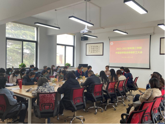 2022年3月24日下午两点四十分,全球十大网赌正规官网2021—2022学年第二学期第三次全体教职工大会于外语学院会议室召开。