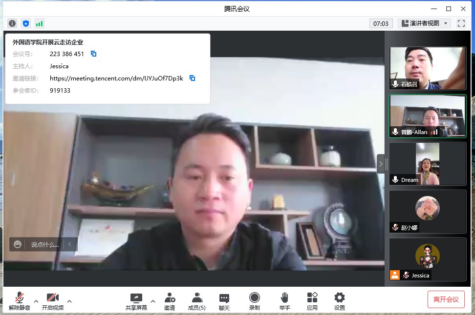 石书记表示,当前由于疫情,企业招聘和学生求职面临着巨大的挑战,云端交流活动是为毕业生和用人单位搭起桥梁,让企业了解学生,也让学生走近用人单位,期待达诺生物技术能够给毕业生更多的实习、就业机会,实现企业和学校发展的共赢。双方还就下一步就业合作基地建设、学生实习开展方式等进行了充分交流,并达成部分合作意向。